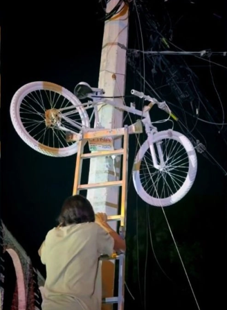 Como acto simbólico, al finalizar su pronunciamiento, los ciclistas colocaron una “Bici Blanca” en lo alto de un poste de luz ubicado en la banqueta del lugar del accidente. Este gesto, ya reconocido internacionalmente, representa la memoria de quienes han perdido la vida a causa de la violencia vial. En la base del poste encendieron una veladora y colocaron pancartas con mensajes como “Alto a la violencia vial”.