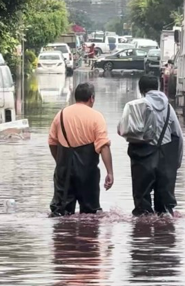 Nezahualcóyotl, Estado de México. Las torrenciales lluvias del pasado sábado provocaron severas inundaciones en este municipio del oriente mexiquense, con afectaciones en 22 mil viviendas, negocios, escuelas y centros religiosos de 24 colonias, 15 de ellas en emergencia y dos con daños graves. El volumen de agua acumulada, según la Comisión Nacional del Agua (Conagua), equivale a 8 mil 500 pipas descargadas de manera simultánea.
