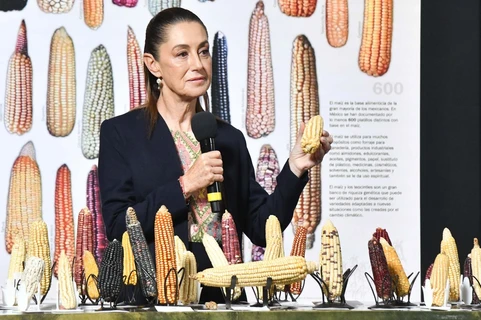 “Si no hubiéramos puesto en la Constitución que está prohibido en México sembrar maíz transgénico, todas estas variedades estarían en riesgo, y estas variedades son por miles de años domesticadas, primero por los pueblos originarios, y ahora en general por los campesinos”, destacó Sheinbaum. “Son miles de años que nos dieron todas estas variedades y si no las cuidamos, se pueden perder”.